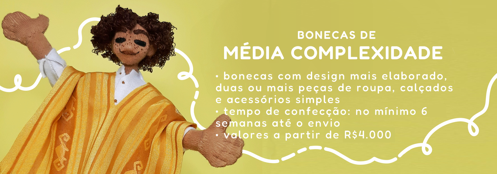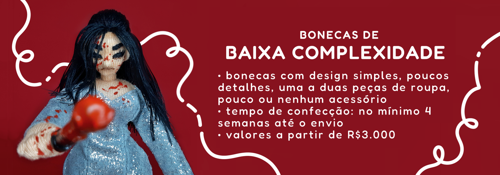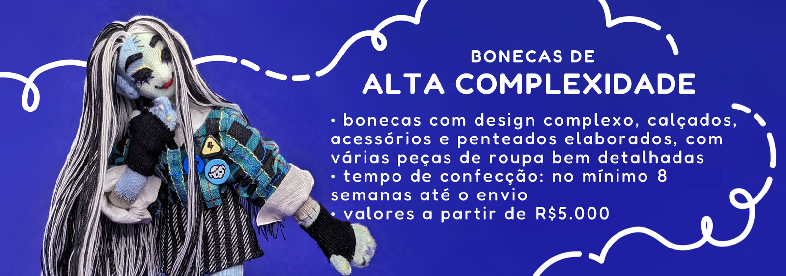 o valor de cada boneca varia de acordo com a sua complexidade estética e seu nível de detalhes, assim como a quantidade de peças de roupa e acessórios. ou seja, quanto mais detalhado for o personagem a ser retratado, maior será o valor final do pedido. a altura da boneca, por outro lado, não tem nenhuma influência no valor, e os tamanhos variam entre aproximadamente 10cm e 20cm.